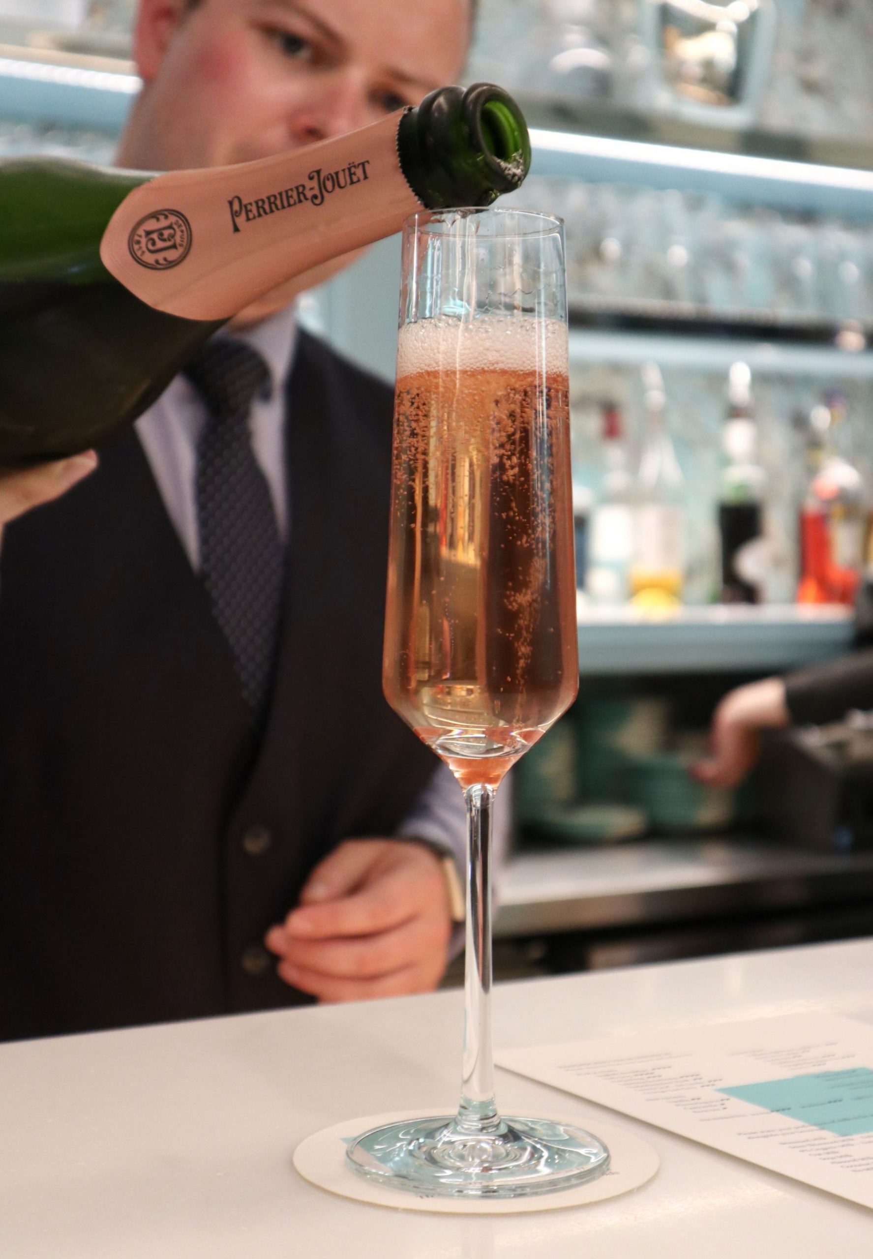 Whilst we waited to be seated at our table, we had a seat by the bar where we sipped on elegant champagne flutes filled with chilled Perrier- Jouët, Blason Rosé NV, a delicious and aromatic blend of rose and orange flowers – the perfect way to cool down on a hot summer’s day.